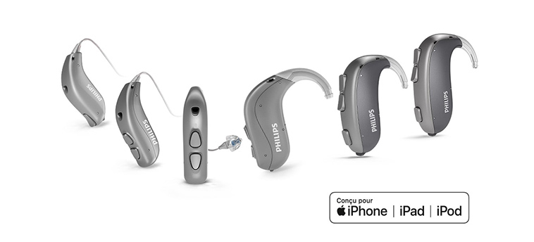 El formato BTE Philips HearLink es Made for iPhone®, iPad Pro®, iPad Air®, iPad®, iPad mini® y iPod touch®.